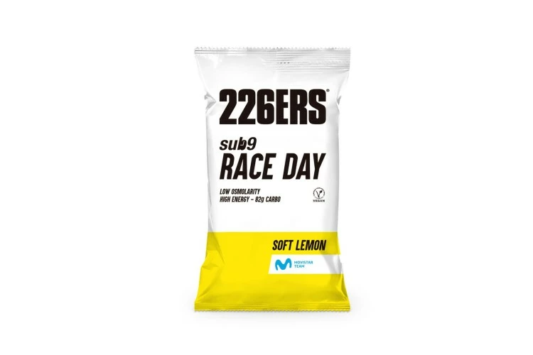 | Sub9 Race Day es apta para veganos, se presenta en formato monodosis y sabor limón suave. Para su preparación se debe añadir un poco de agua al bidón, disolver el polvo del sobre en el mismo, agitar fuertemente y rellenar de agua hasta su totalidad. Para llenar depósitos de carbohidratos (500 ml durante la hora previa al ejercicio) y en entrenamientos o competiciones a partir de 500 ml/hora. | |