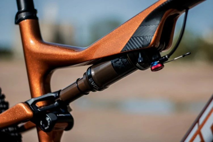 | Gracias a los tirantes Flex Stay, se consigue establecer una compresión progresiva del amortiguador tanto al inicio como al final del recorrido del amortiguador. Para hacerse una idea visual, cuando la bicicleta está sin ciclista, los tirantes traseros están con una tensión mínima, una vez que te subes a ella y con un ajuste de SAG del 26% aproximadamente, los tirantes empiezan a estar en tensiön pero sin variar su recorrido pero; en el momento en el que empiezas a pedalear; los tirantes comienzan a flexar progresivamente hasta el recorrido máximo que de el amortiguador. Gracias a esto, se consigue que el amortiguador tenga un recorrido progresivo, creando una plataforma de pedaleo sobresalinto. |